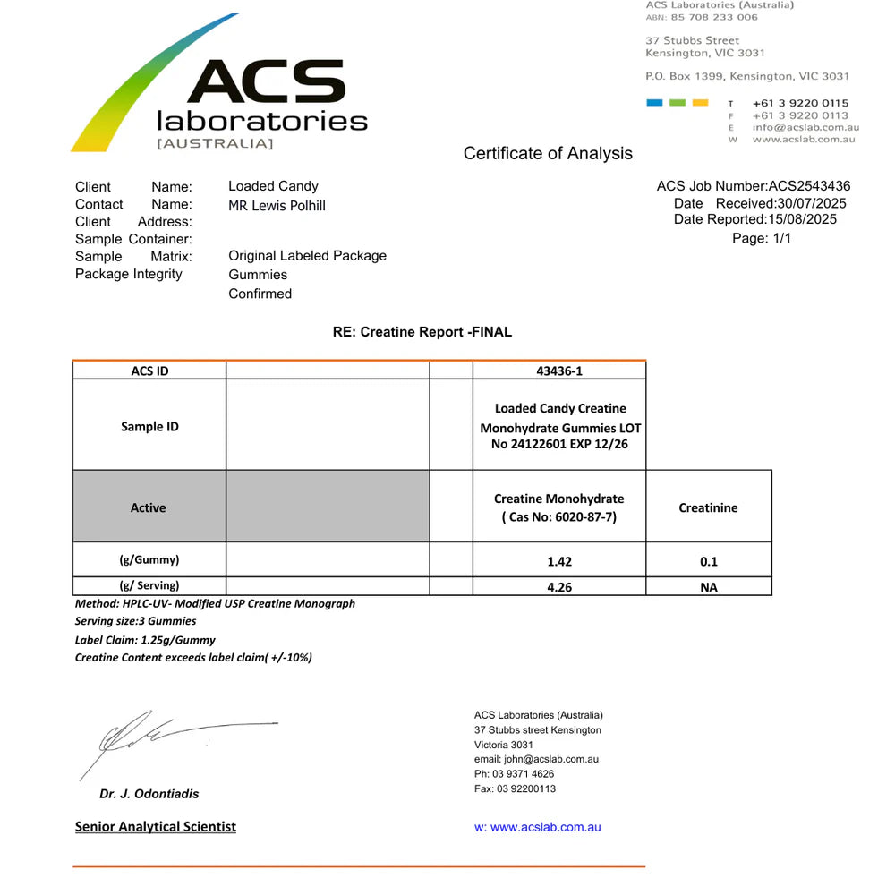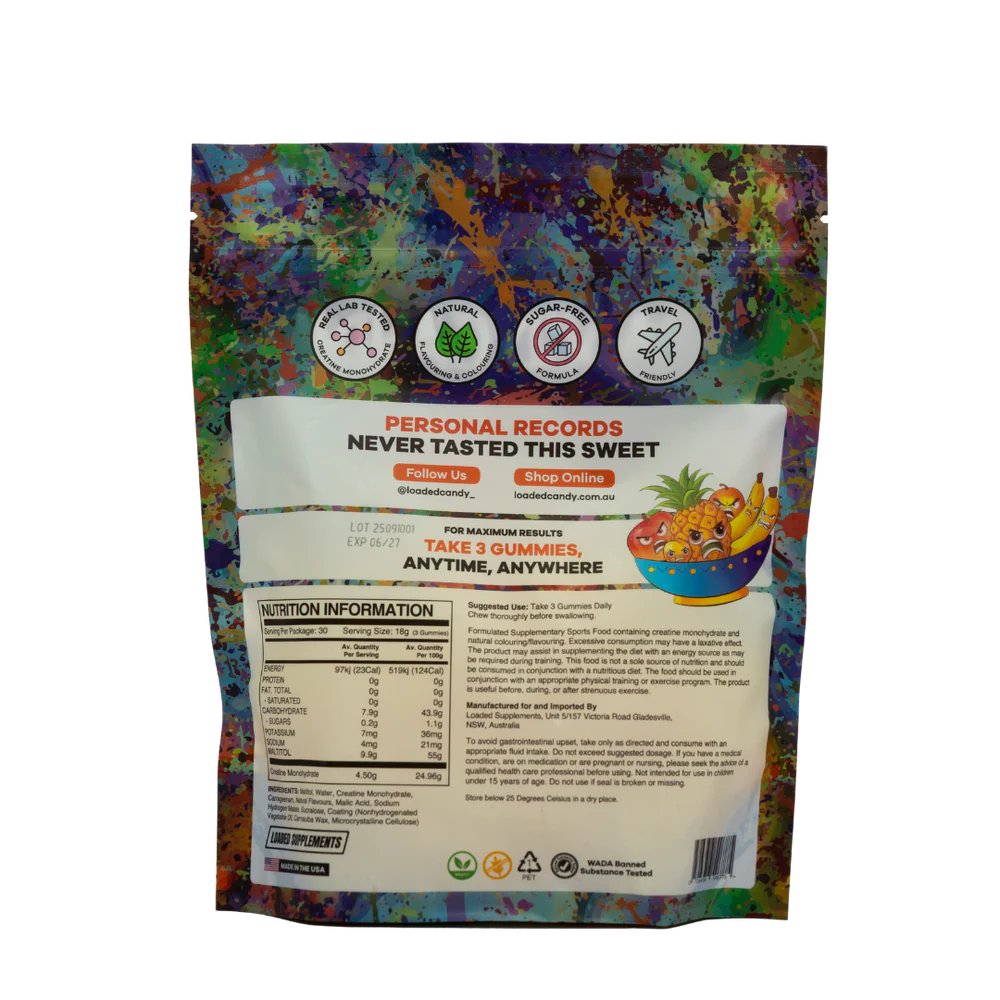 Whether you're training hard or just starting out, Loaded Candy Creatine Gummies make daily creatine effortless—and enjoyable.