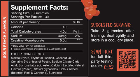Packed with 5g creatine monohydrate to fuel your exercise and recovery, Swoleys Creatine Monohydrate Gummy Bears are low in carbs and are the easiest way to take your daily creatine. Creatine Monohydrate is a powerful ingredient that helps boost muscle growth, health, and recovery, as well as improve cognitive function and energy output during workouts. Your new tasty workout companion where strength meets low calorie sweetness.