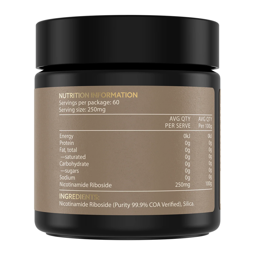 Elevate your wellness routine with pure Nicotinamide Riboside — a naturally occurring precursor to NAD⁺ and a premium addition to your daily supplement stack.