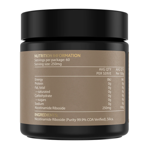 Each serving delivers 250 mg of 100% pure Nicotinamide Riboside, giving you a clean, efficient dose with no unnecessary additives.
